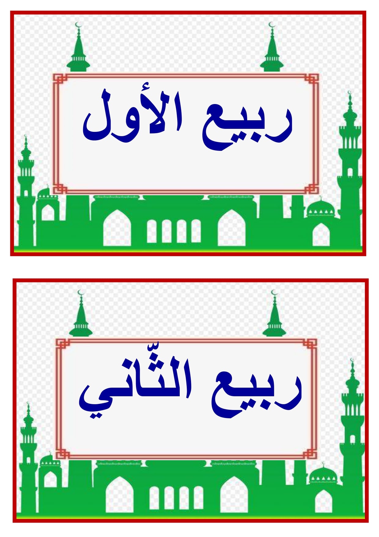 1-تحميل بطاقات شهور السنة الهجرية جاهزة لتزيين القسم :