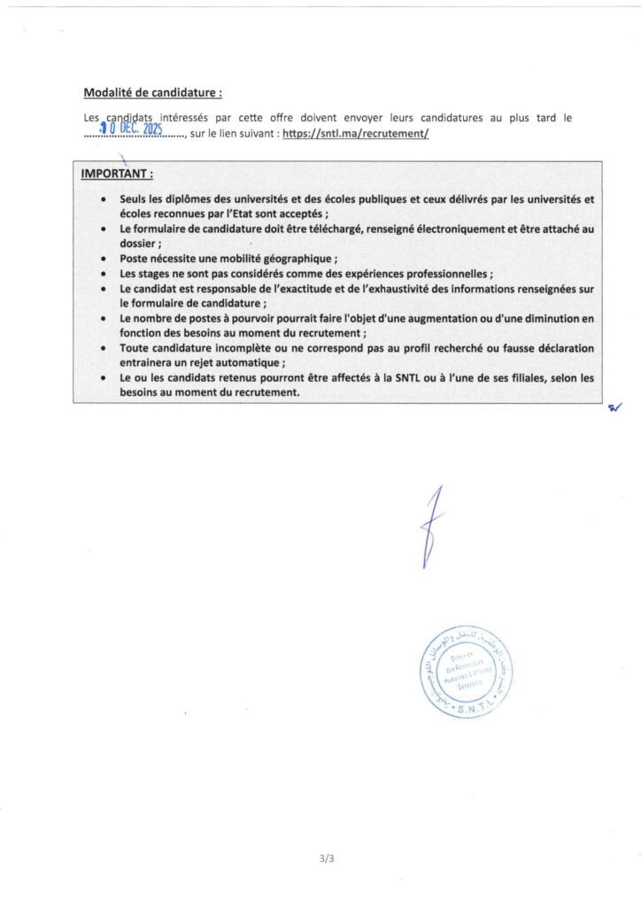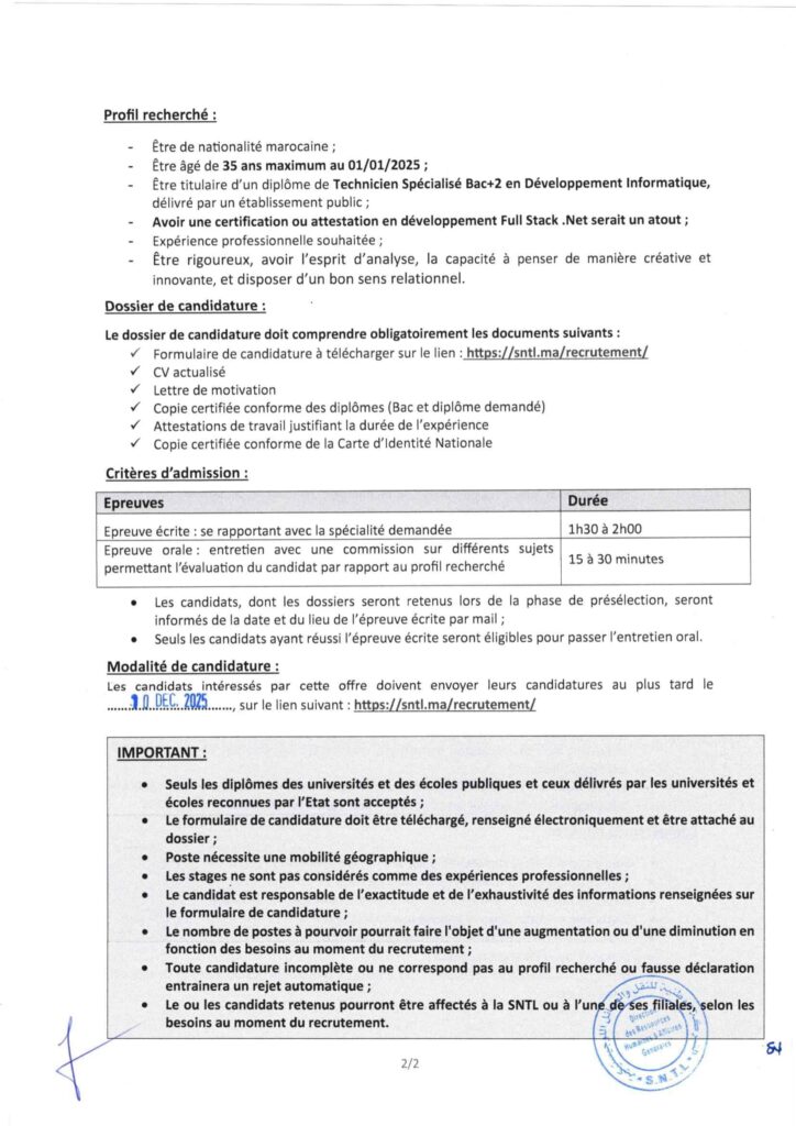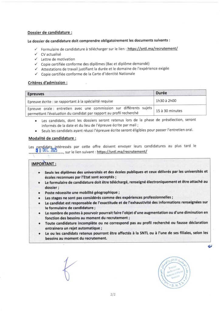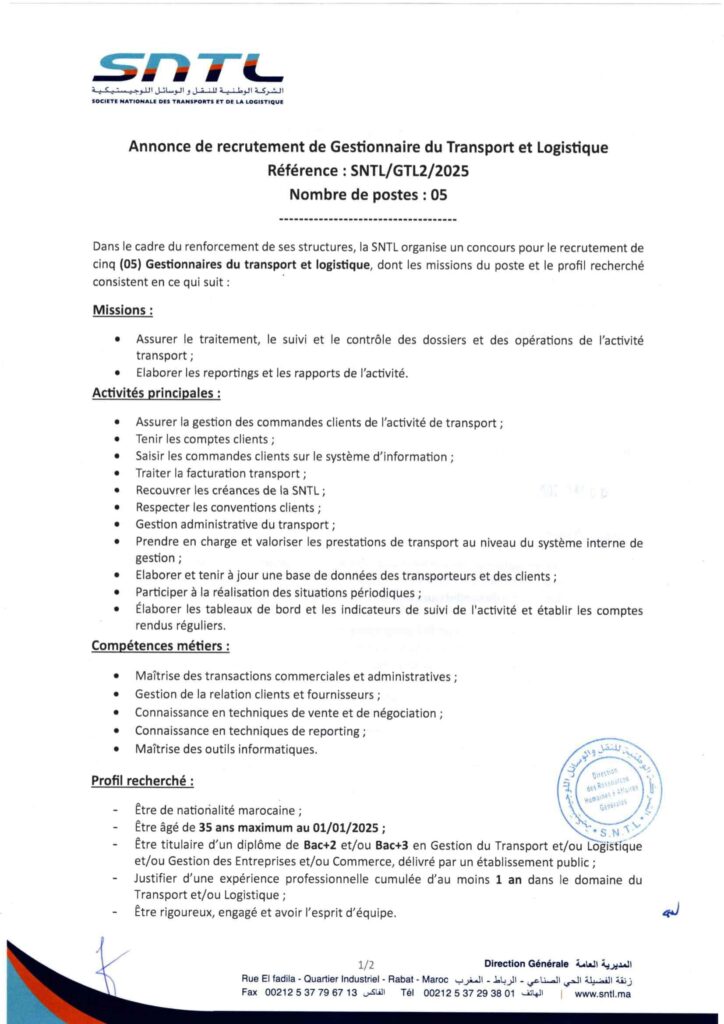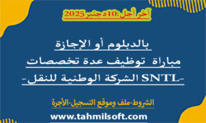 مباراة توظيف عدة مناصب بالشركة الوطنية للنقل والوسائل اللوجيستيكيةSNTL، بالدبلوم أو الإجازةآخر أجل هو 10 دجنبر2025