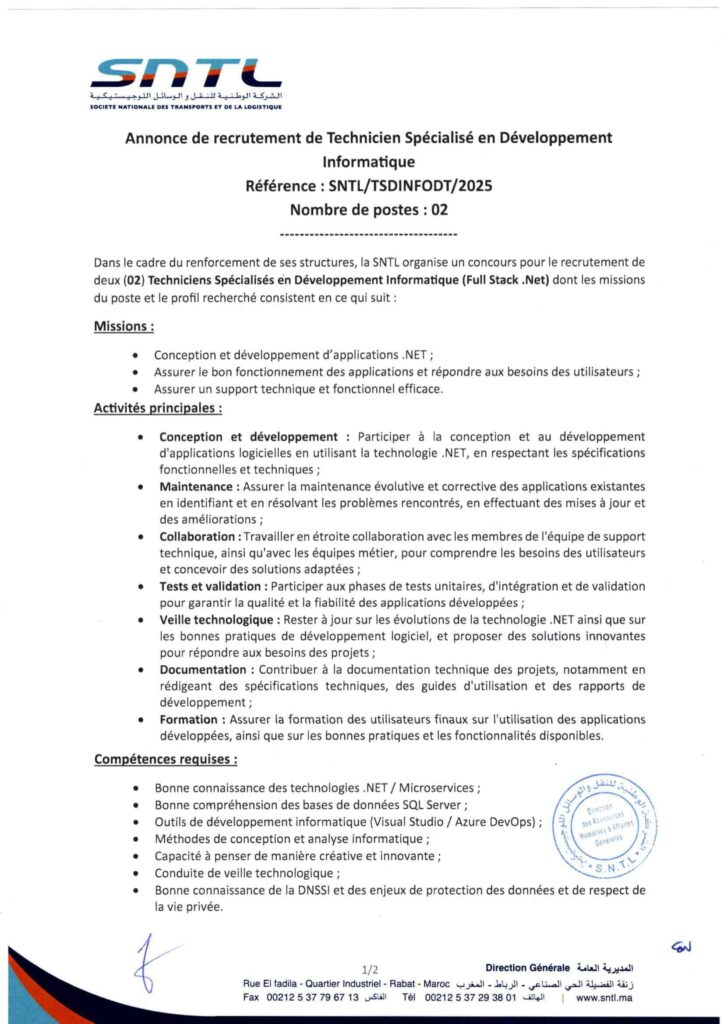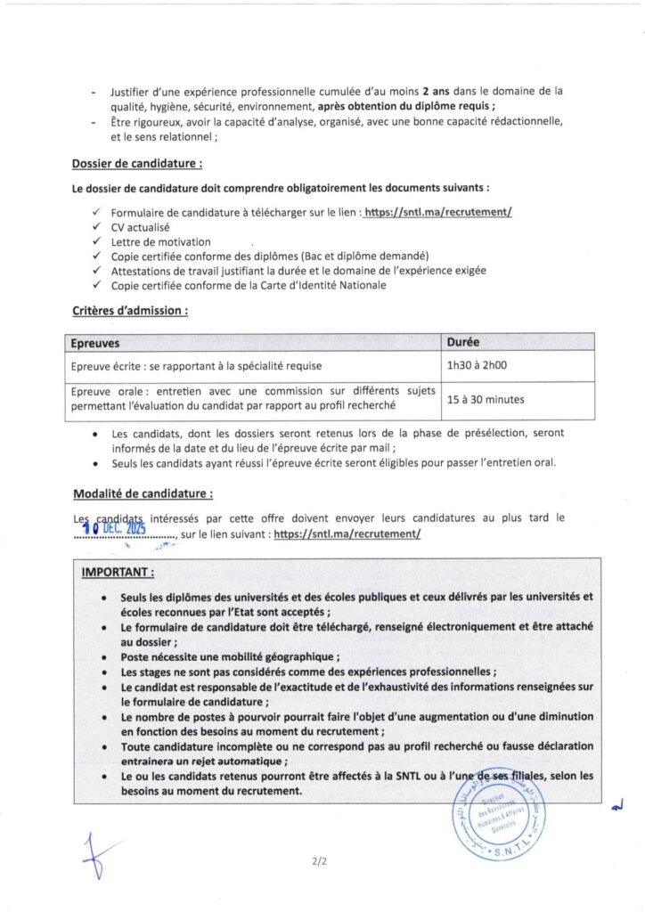 Concours de Recrutement SNTL 2025 (09 Postes)