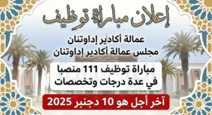 مجلس عمالة أكادير إداوتنان مباراة توظيف 111 منصب آخر أجل 10 دجنبر 2025.
