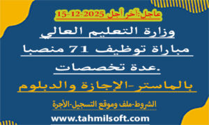 تنظم وزارة التعليم العالي والبحث العلمي والابتكار برسم سنة 2026 مباراة لتوظيف 71 منصباً موزعة على النحو التالي: