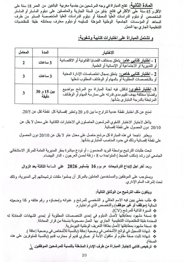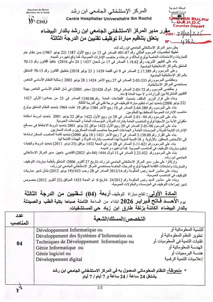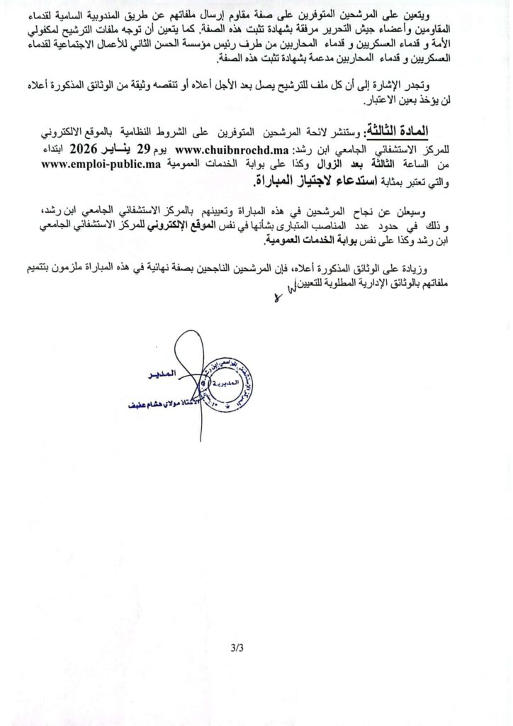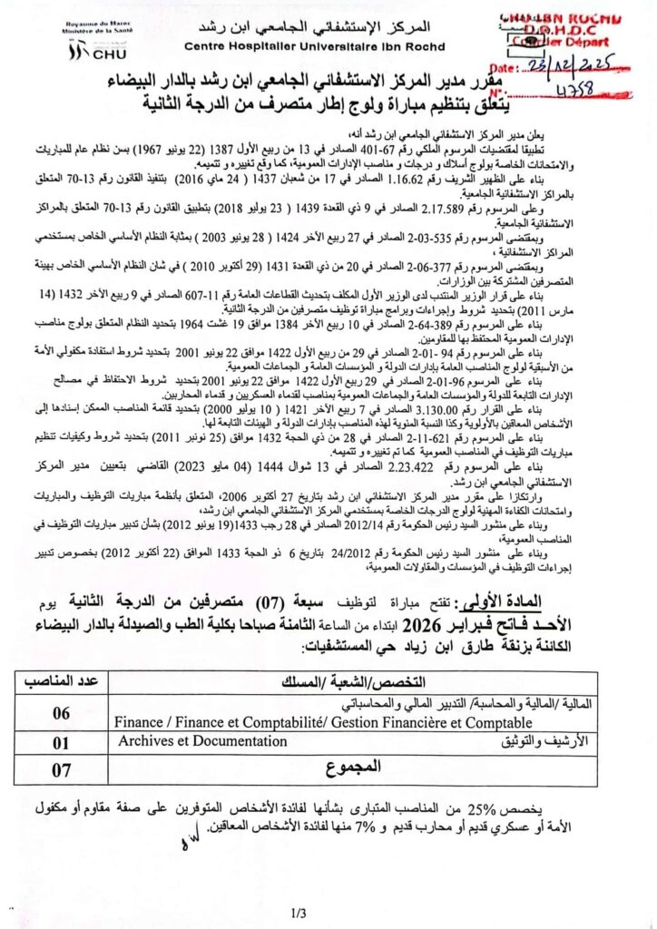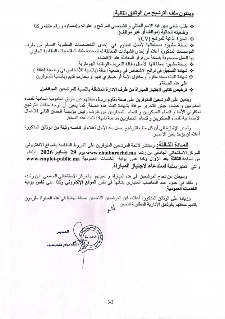يعلن المركز الاستشفائي ابن رشد عن مباراة لتوظيف (18) منصب، آخر أجل 16 يناير 2026